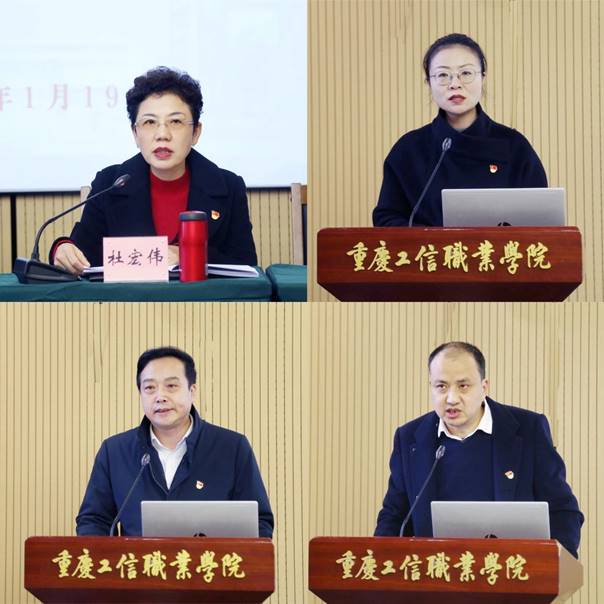 1月19日下午,重庆工信职业学院面向全体教职员工召开了2024年度“以案四说”警示教育大会,深入学习贯彻习近平总书记关于全面从严治党的重要论述和党中央关于全面从严治党的战略部署。结合我市教育系统后勤领域“以案四说”会议精神和市经济信息委相关会议精神,以反面典型为警示,用身边事教育身边人,深化以案促改、以案促治,引导全体党员、教师筑牢廉洁自律意识。纪委书记金文娟主持会议,党委书记高明讲话,其余院领导出席会议并作发言。