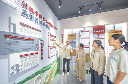 重庆市荣昌区纪委监委把警示教育作为推动以案促改促治工作的重要抓手,坚持创新形式载体、因材施教、精准滴灌,精心打造农村基层党风廉政教育馆,教育引导广大基层党员干部知敬畏、存戒惧、守底线。图为近日,该区直升镇村社干部在馆内参观学习。