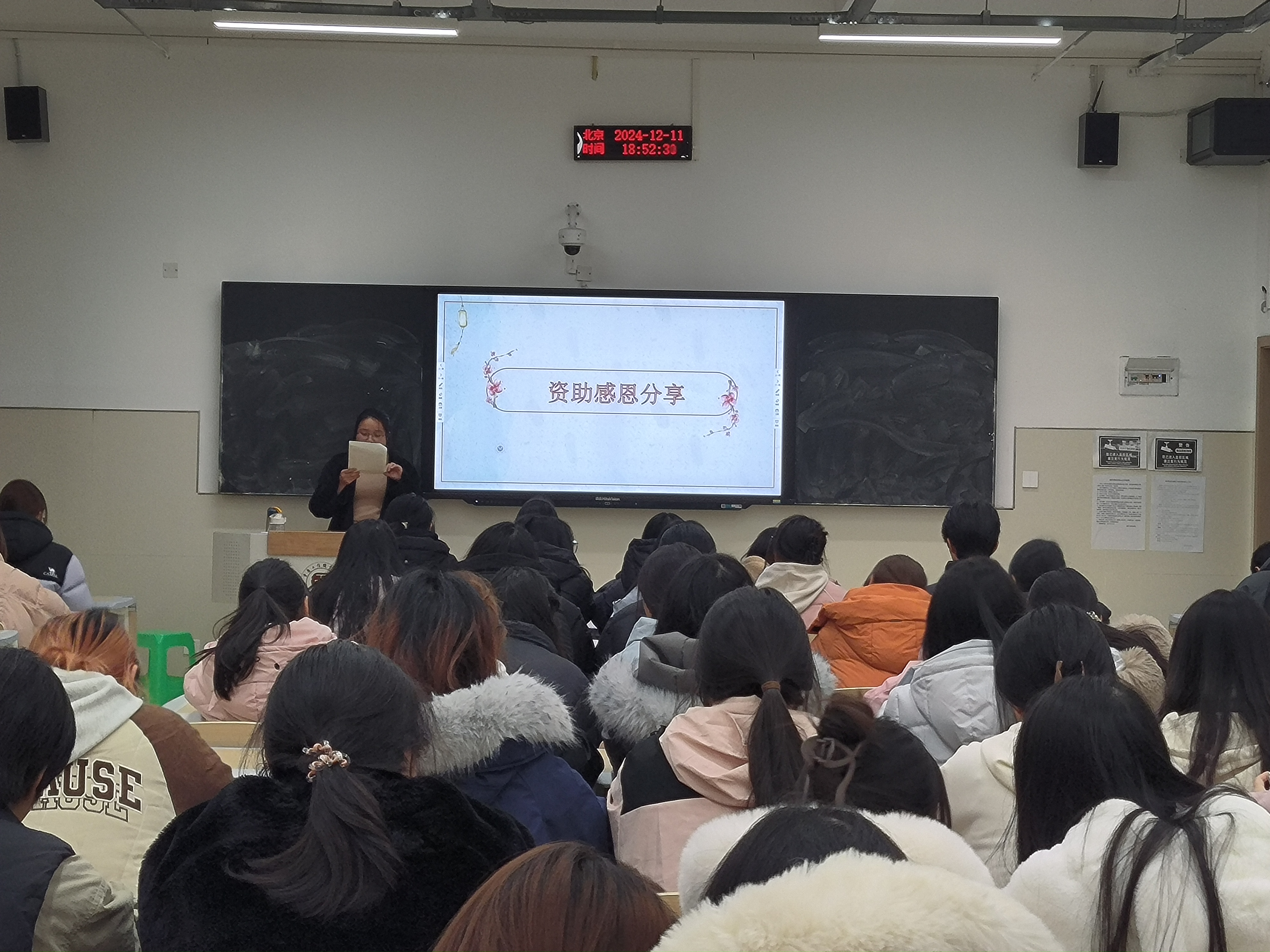 陈美玲老师以“爱心助学、知恩于心、感恩于行”为主线,为同学们全面解读了国家资助政策的温暖力量,让同学们深刻体会到资助政策背后的关爱与期待。活动现场,受资助同学勇敢地走上讲台,分享自己的经历,他们讲述了家庭经济困难给自己带来的压力,以及获得资助后的感激与改变。这些真挚的话语,如同一股暖流,流淌在每一位同学的心间,让大家更加珍惜这来之不易的学习机会。