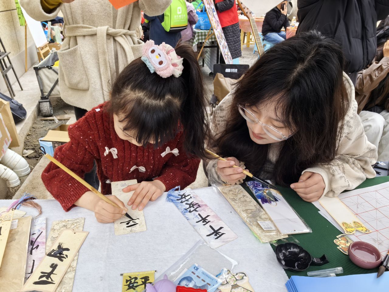 此外,在现场表演中,现代服务学院的志愿者们还积极弘扬中华传统文化,田卓琳同学以出色的书法为现场的游客赠送书签,写下句句祝福。栗薇薇、代邓亿等同学以乐器演奏的方式为油菜花节增添活力,带来春日活力。