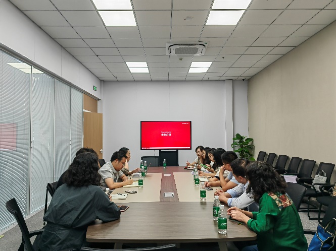 在企业代表的陪同下,学院教师参观了汽车直播基地,实地了解了直播场景配置、运营模式及其技术应用。随后,企业负责人介绍了公司的发展历程、核心优势及业务资源,其合作客户涵盖长安、赛力斯、东风等知名新能源品牌,并在本地生活服务领域位居全国前列。