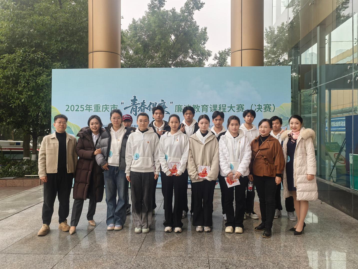 为深入贯彻落实新时代廉洁文化建设要求,提升专业课程思政育人实效,由重庆团市委主办的2025年重庆市首届“青春倡廉”廉洁教育课程大赛决赛顺利举行。近日,由重庆市纪委监委机关、市委直属机关工委、市教委、市国资委、团市委联合主办,长寿区委、区政府承办的2025年重庆市首届“青春倡廉”廉洁教育课程大赛圆满落幕。在学校纪检监察室的指导下,现代服务学院教学团队报送的课程作品从全市465件参赛作品中脱颖而出,成功晋级决赛,并荣获大赛二等奖。