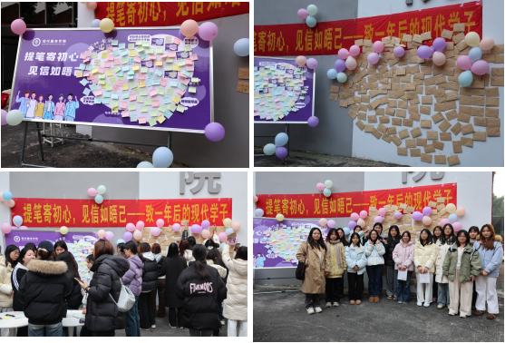 当笔墨落在信笺上,当彩色便签贴满主题展板,一场跨越时光的对话在现代服务学院教学楼大厅悄然开启。1月12日,“提笔寄初心,见信如晤己——致一年后的现代学子”主题活动圆满举行,活动前期学院已通过发布精美通知海报预热造势,学院老师与全体学子共同参与,以书信为媒,将此刻的憧憬与期许,封装成送给未来的珍贵礼物。