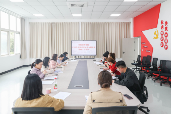 为深入学习贯彻全面从严治党战略方针,系统谋划与部署年度党建与事业发展重点任务,现代服务学院于2026年4月2日组织召开专题会议。会议聚焦“严”的主基调与“实”的政绩观,旨在统一思想、明确路径、压实责任。会议由学院党总支书记周艳主持,党总支副书记、副院长肖建敏、教师党支部、学生党支部全体委员、各部门和教研室负责人参会。