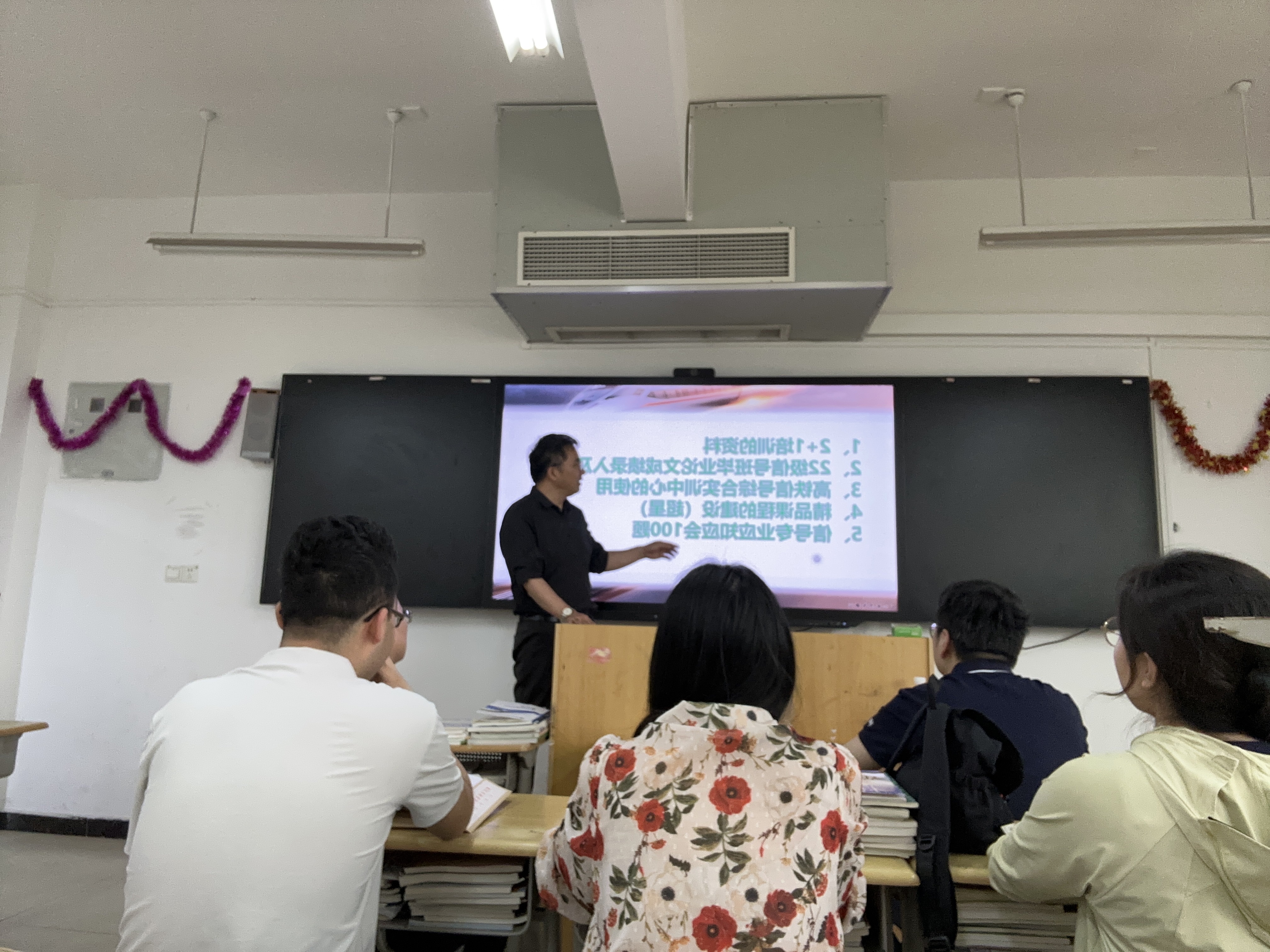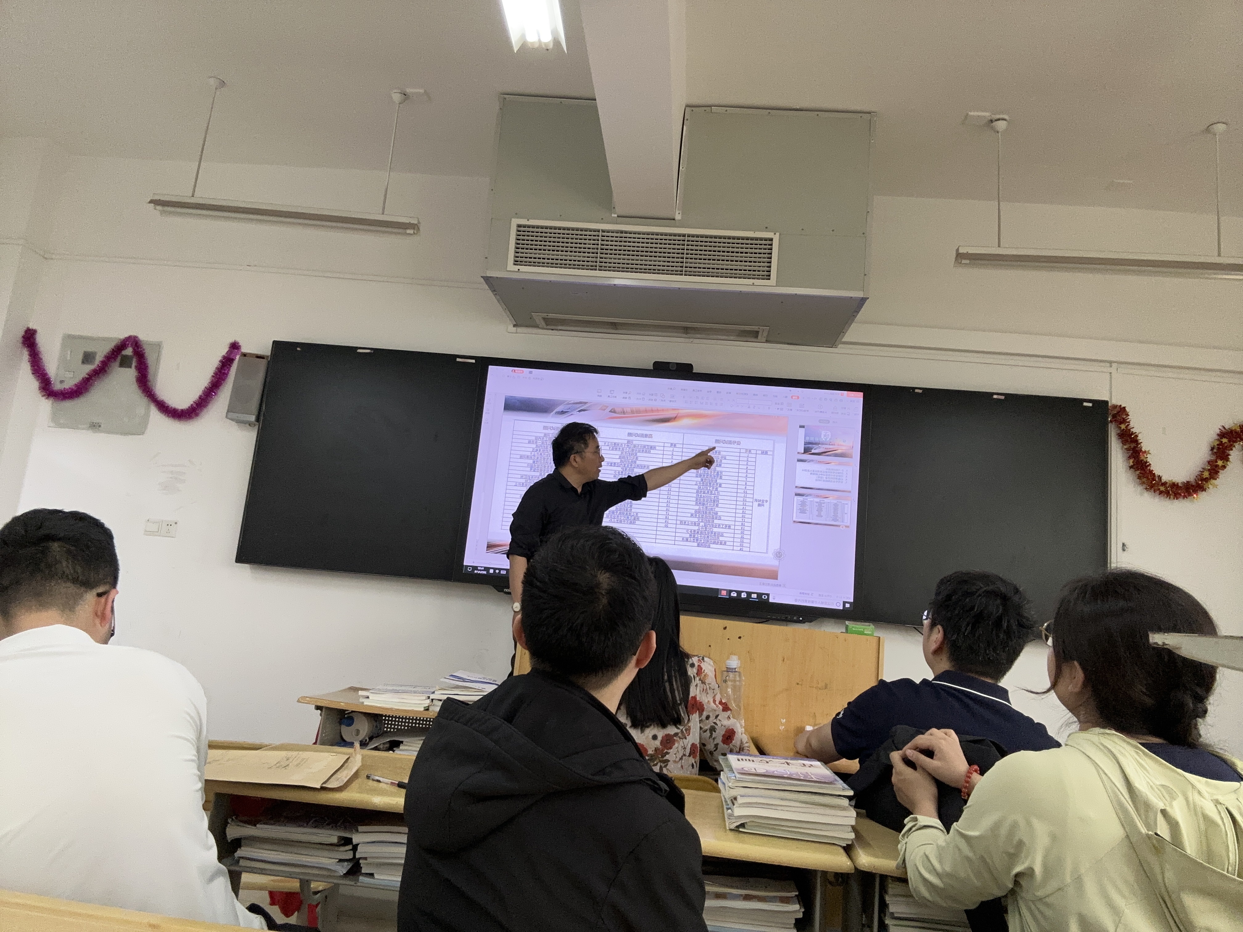 在活动的另一个环节,于老师为大家讲解了精品课程建设的初步构想,并提出要根据目前授课内容好好打磨专业教师授课内容,充分利用学习通系统,将学习通真正利用在课堂上,不要仅局限于学习通部分功能的使用。