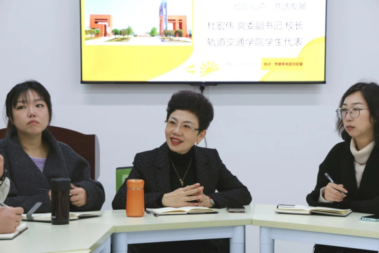 2025年3月13日中午,轨道交通学院在秀慧苑党团活动室成功举办了校领导与学生代表面对面座谈会。学校党委副书记、校长杜宏伟,学院负责人杜彩霞、李倩,学工部艾钊、社区辅导员代表以及23级、24级学生代表共同参与此次座谈。会议由学工干事李德成主持。座谈会以“倾听学生心声,共促学校发展”为主题,围绕就业、教学、生活等方面展开深入交流,旨在深入贯彻落实党的二十大精神,践行以学生为中心的发展理念,切实解决学生关切问题,助力学生成长成才,为培养担当民族复兴大任的时代新人贡献力量。