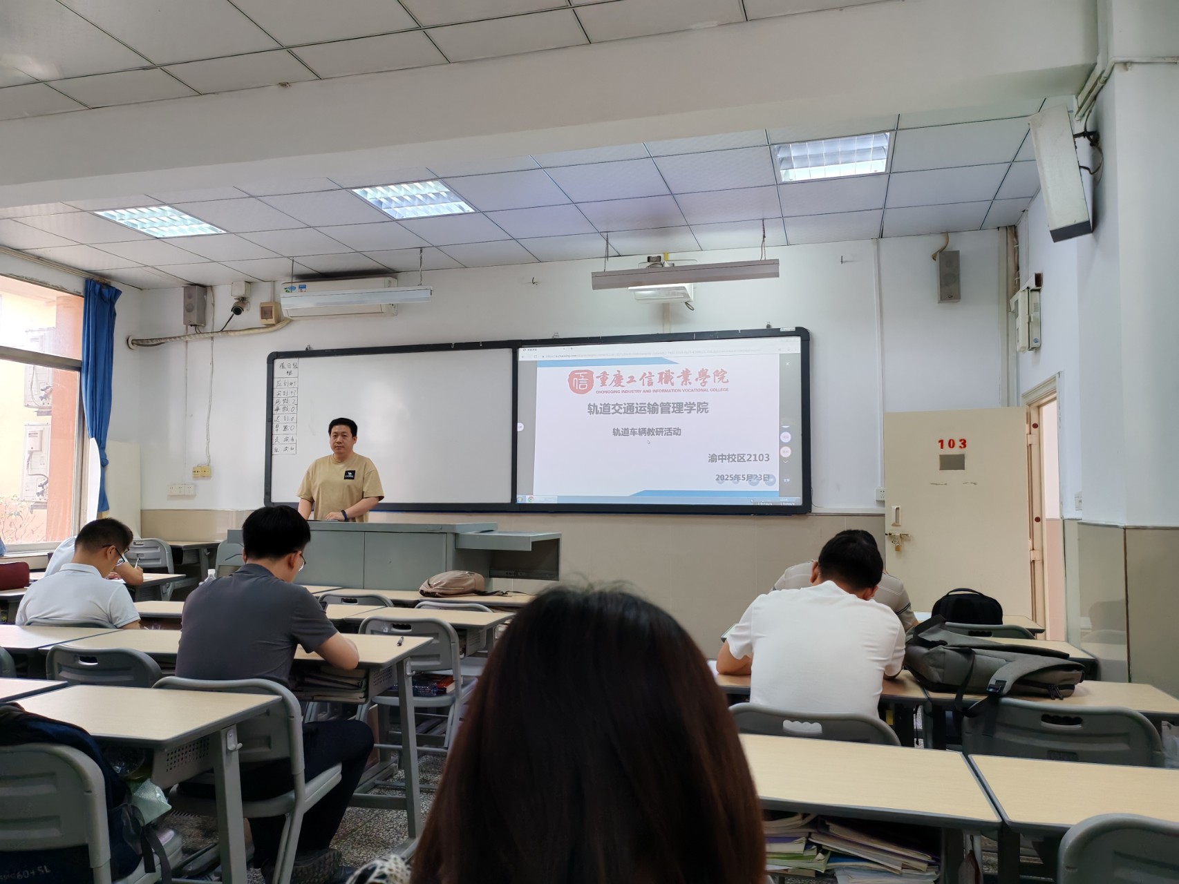 轨道车辆教研室于2025年5月23日,在渝中校区2103教室举行了一场以"轨道交通车辆技术比赛教学案例"为主题的教研活动,轨道车辆教研室专业教师及曾指导学生参赛的优秀教师参与了本次活动。