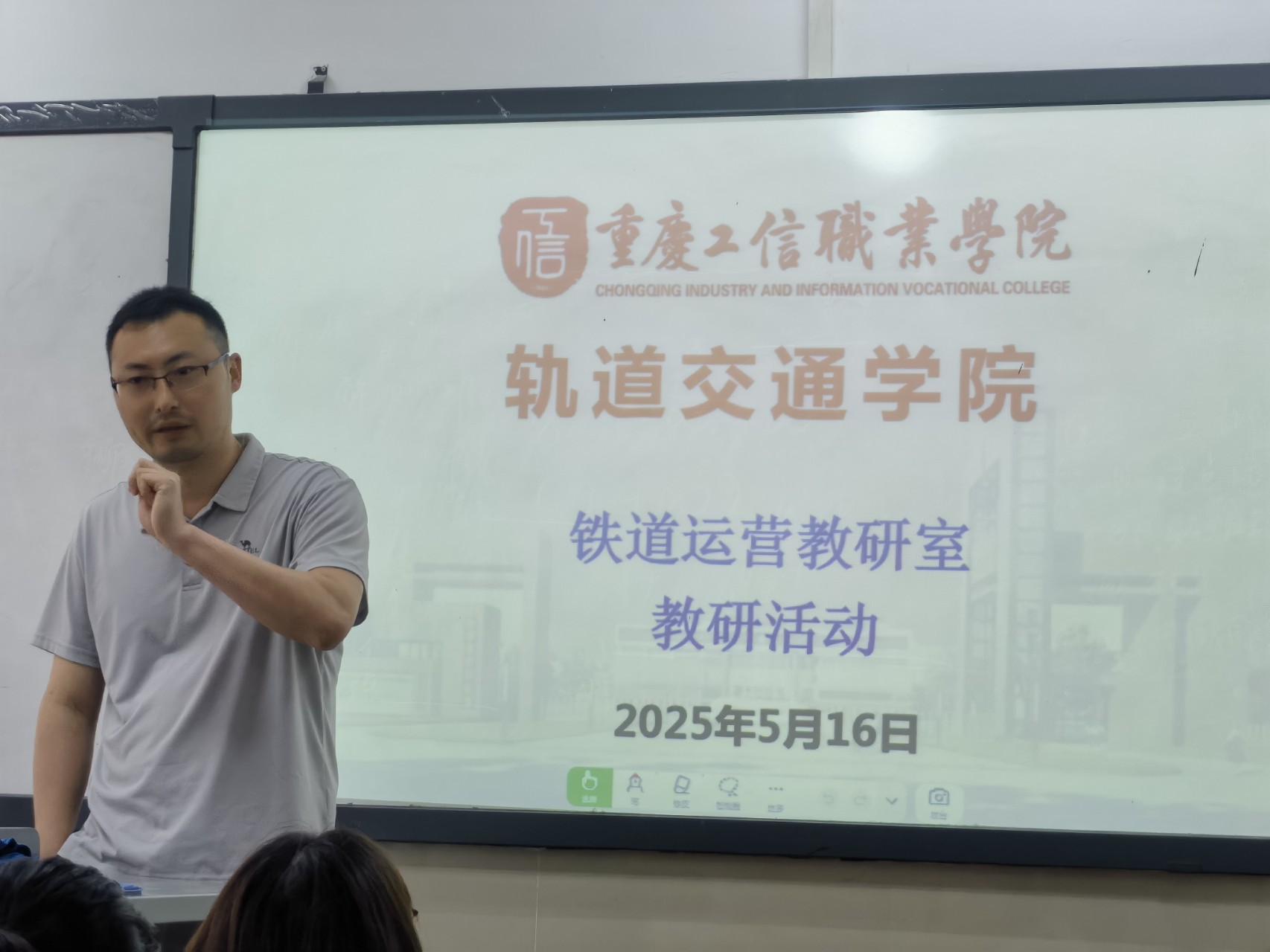 2025年5月16日,铁道运营教研室在渝中校区2205教室召开了主题为“专业课程建设分享”的教研活动。本次活动聚焦精品课程建设、课程资源平台更新与教学进度统一等方面内容,旨在进一步推动精品教研室教学质量提升及期末各项工作的有序开展。