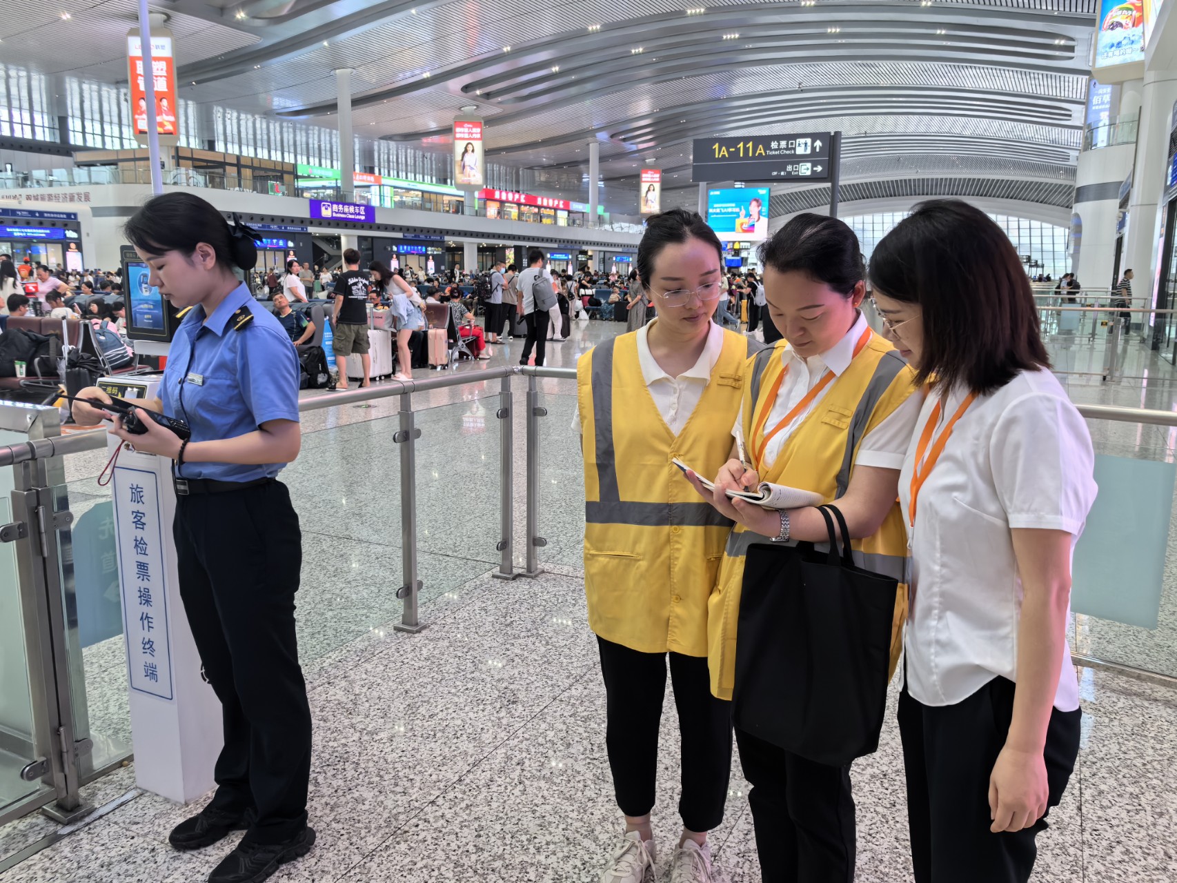 在实践期间,教师们深入重庆西站客运服务一线,全面参与了车站多个关键岗位的跟岗学习。在售票大厅,熟悉电子客票系统的操作流程,了解智能化售票设备的应用及旅客常见问题的处理技巧;在服务台,学习旅客咨询应答规范、重点旅客服务及突发事件应急协调机制;在站台,观摩站台列车到发作业流程,掌握了站台安全管控、乘降组织及站车协同等关键技能;此外,在检票口,体验实名制核验、客流疏导及智能化检票设备的运维管理。