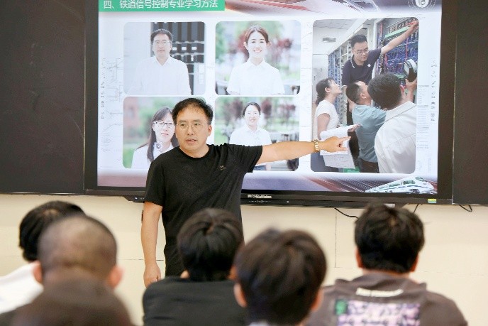 首先,各班级在志愿者带领下有序参观了动车组检修综合实训中心、信号综合实训中心、仿真实训中心、接发列车实训室、客运组织实训室等12个专业实训室,全国技能大赛获奖选手和优秀学生代表进行现场讲解;随后,各专业教研室主任和骨干教师为新生进行了2课时的专业认知专题讲座,系统介绍了学科专业的历史沿革、前沿动态、培养方案、师资力量、教学资源和实践教学条件,以优秀校友案例和详实的数据向新生介绍学院在学科竞赛、人才培养等方面取得的成绩,帮助新生们全面认识所学专业,激发他们对专业领域的浓厚学习兴趣和探索未知的强烈欲望。学院副院长黄兰华全程指导,党总支书记马毅深入课堂看望新生。