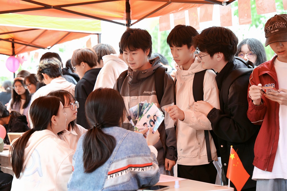 此外,“红映扇面”鼓励参与者以彩笔抒怀,在方寸扇面上描绘心中的家国图景;“同心筑塔”则通过团队合力操控装置搭建“红韵金字塔”,象征青年一代携手共筑民族复兴伟业的坚定信念。活动现场气氛热烈,青春活力与爱国情怀交融激荡,构成一道独特的校园风景线。