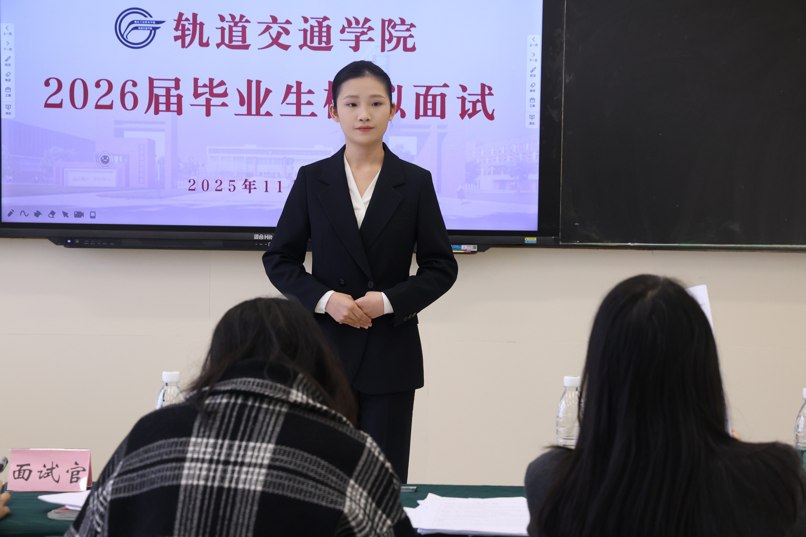为深入贯彻教育部、市教委关于高校毕业生就业工作决策部署,切实提升毕业生就业竞争力与岗位适配度,推动实现毕业生高质量充分就业,轨道交通学院立足学生实际需求,创新实践育人模式,于2025年11月13日在立德楼成功举行“2026届毕业生模拟面试”专项活动。活动以“打造高质量就业直通车”为目标,通过全真模拟和精准指导,帮助学生掌握铁路系统结构化面试技巧。