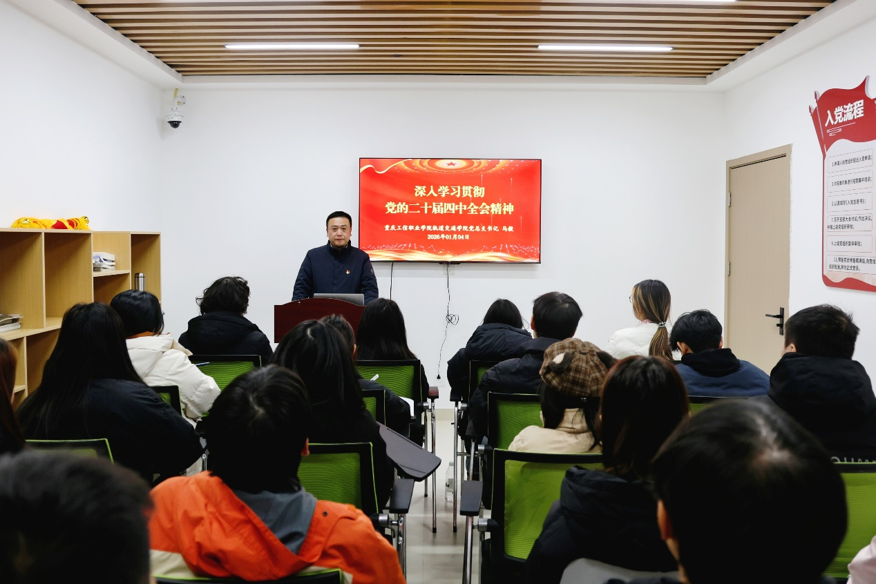 为深入学习贯彻党的二十届四中全会精神,2026年1月4日,轨道交通学院党总支书记马毅为学院辅导员、学生代表开展了一场别开生面的专题宣讲会。会上,马书记围绕全会提出的“十五五”时期经济社会发展目标任务,部署贯彻落实举措,并号召同学们认真学习,技能报国。
