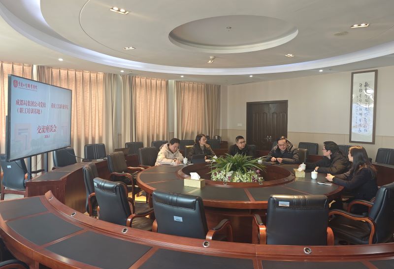 2026年1月12日,中国铁路成都局集团公司党校(职工培训基地)陈慕恒副校长、曾锦主任一行到访我校,学校党委委员、副院长柴彬堂、继续教育学院副院长周振瑜、轨道交通学院党总支副书记、副院长黄兰华及骨干教师全程陪同。双方围绕校企合作、人才培养、技术攻关等议题展开深入交流,共谋合作发展新路径。