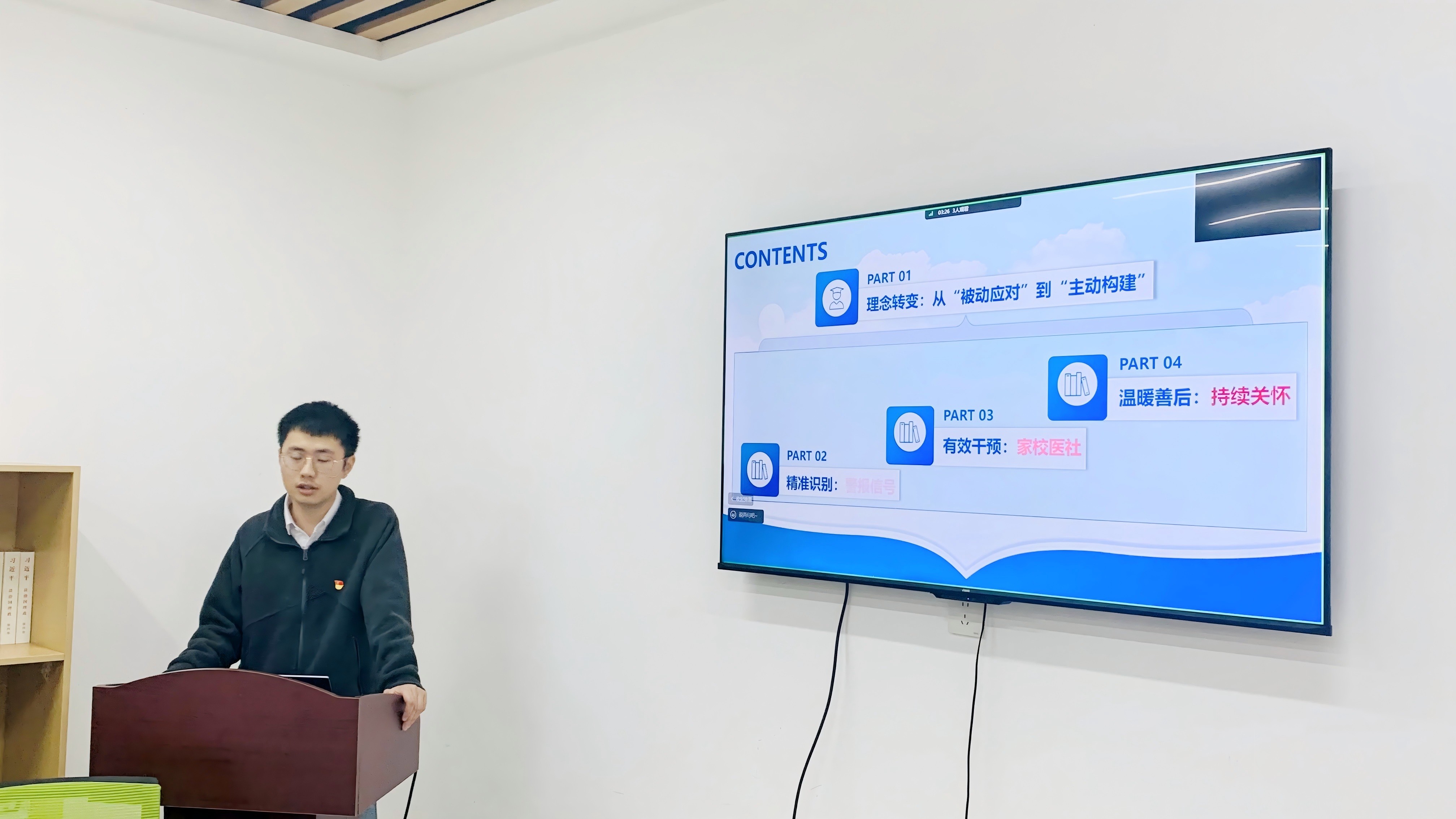 在案例分享环节,详细讲解了面对部分高知高管家长强硬态度时,辅导员应遵循“又一村工程”理念开展的系列工作:组建由辅导员、心理中心工作人员、专业教师、学生骨干组成的协同工作小组;多次与家长、学生开展耐心细致的谈话沟通;分类分级厘清问题性质与严重程度;规范记录归集相关材料,形成完整工作合订本;动态评估跟踪,及时调整干预策略。在家校联动环节,既充分尊重家长的社会地位,又以明确的制度依据、详实的行为观察数据和专业的评估报告,形成有理有据的“软压力”,最终推动家长从“否认同盟”转变为“支持同盟”。家校联动绝非一次性电话通知,而是一个持续推进、有策略、有温度且有理有据的沟通过程,唯有如此,才能形成干预合力。