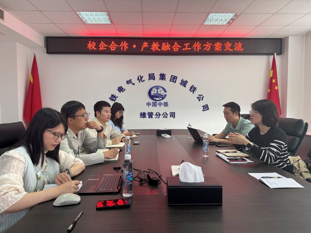 月 22 日,轨道交通学院副院长黄兰华,学工办主任艾钊,供电教研室主任程德保一行3人赴中铁电气化局集团西南分公司维保分公司,联合召开校企合作工作方案专题研讨会,维保分公司总经理魏晓魁携人事部,劳资部,培训部负责人参会,双方围绕产业学院、人才培养、实训基地、课程资源、师资队伍、现场工程师学院等核心事项进行深度研讨、细化部署,为双方长期深度合作奠定坚实基础。