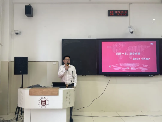 王老师以“四历一本,宽专多能”为主题,从数字化时代的生存法则作为导入,详细介绍了企业-企业与员工-员工与人才之间的关系,让学生明确目标,提早布局,具备“要学以致用-用以致学”的能力。