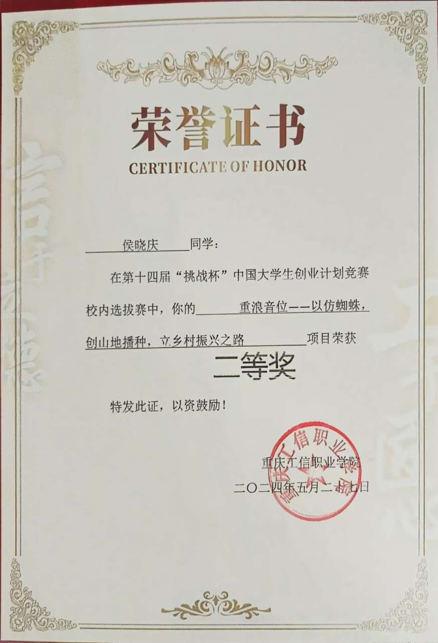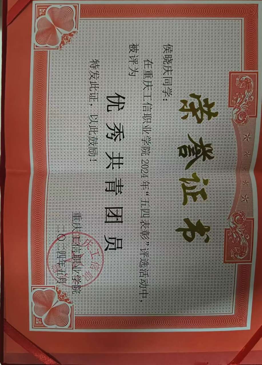 候晓庆,共青团员,工业设计23级1班。在班上担任心理委员职务。专业在读两年内,曾在第十四届“挑战杯”大学生创业计划竞赛校内选拔赛二等奖,重庆市选拔赛中荣获铜奖,、在校获得2024年“优秀共青团员”。在校积极参加学校志愿活动。
