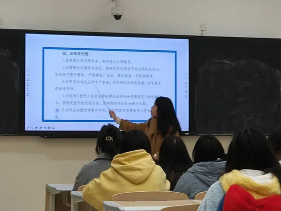 借助案例片段的辅助,复杂的制度变得生动易懂,同学们纷纷专注聆听,不少人还认真做着笔记,初步构建起了对“红黄牌”制度较为全面的认知框架。