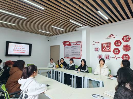 2025年3月11日中午12点40分,学院负责人彭阳在一站式社区与23级、24级数字媒体技术专业部分学生代表针对入学以来的学习生活展开交流。