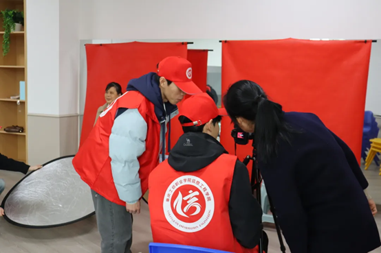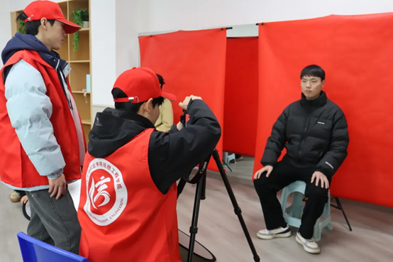 拍摄现场,不乏一个个红色的身影出现!定睛一看,原来是信息工程学院身穿红马甲的志愿者们!他们在活动日早早来到菩提社区,从设备调试到场地布置,确保每个环节顺利进行。他们耐心地调整拍摄角度,力求为工作人员们拍摄更好的证件照,以自己的行动为新时代雷锋故事增添青春色彩。