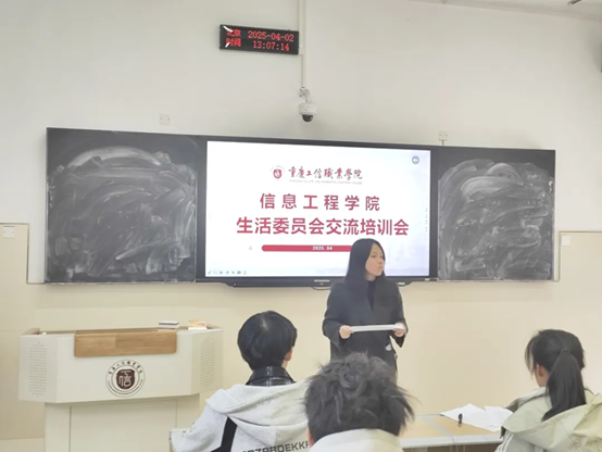 为切实提升生活委员的综合服务能力,进一步规范学院生活管理工作流程,加强学生干部队伍专业化建设,信息工程学院于2025年04月02日在广知楼2208组织召开生活委员会交流培训会。我院学生会成员、23级与24级生活委员参加此次培训会
