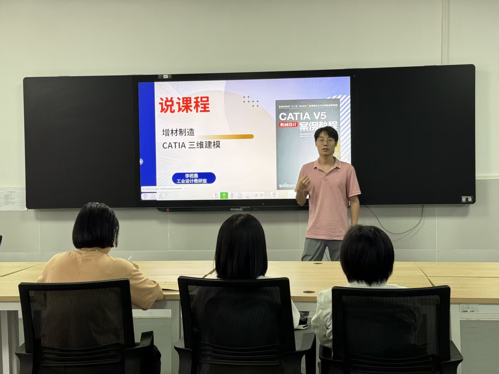 在教学能力提升环节,教研室安排李若愚老师就《增材制造:CATIA三维建模》课程进行系统说课。李老师从课程定位、教学目标、学情分析、教学方法和评价体系五个方面进行了全面阐述。课程内容以实体建模、曲面建模和综合演练为主线,采用“项目驱动+案例引导”的教学模式,引导学生完成从基础到综合的技能进阶。在教学实施中,特别地,课程引入了“增长性评价”体系,不仅关注最终成果,更重视学生的阶段性进步,有效激发了学生的学习主动性,也为教研室积累了宝贵的教学经验,为后续人才培养工作奠定了坚实基础。