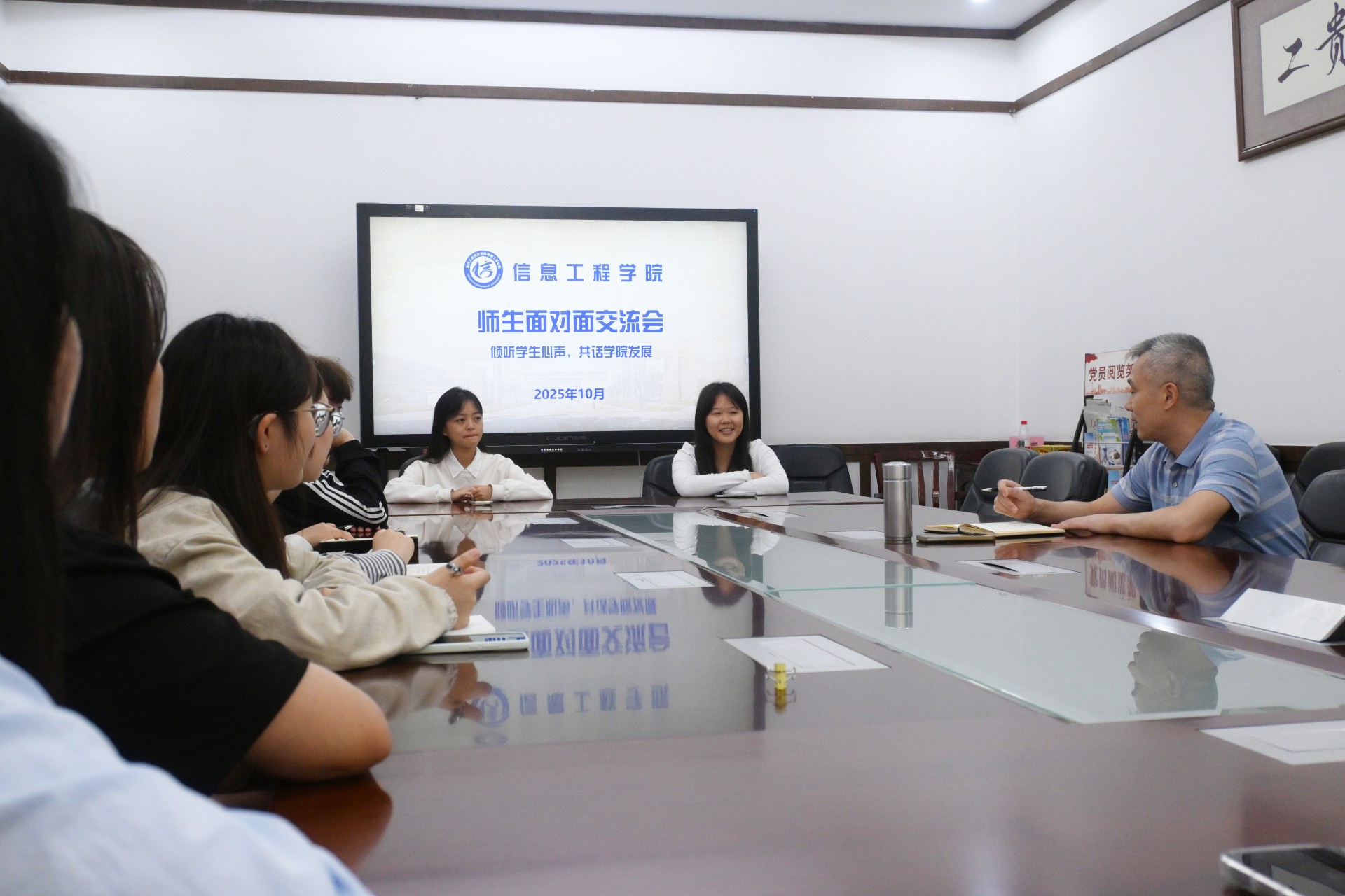 为进一步畅通师生沟通渠道,切实关注学生成长需求,10月14日,信息工程学院在世纪楼3315会议室成功举办了院领导社区联系学生活动。学院党总支书记左磊、数字媒体技术教研室主任李琳与来自数字媒体技术专业24级、25级的10余名学生代表进行了面对面的深入交流,现场气氛坦诚而热烈。