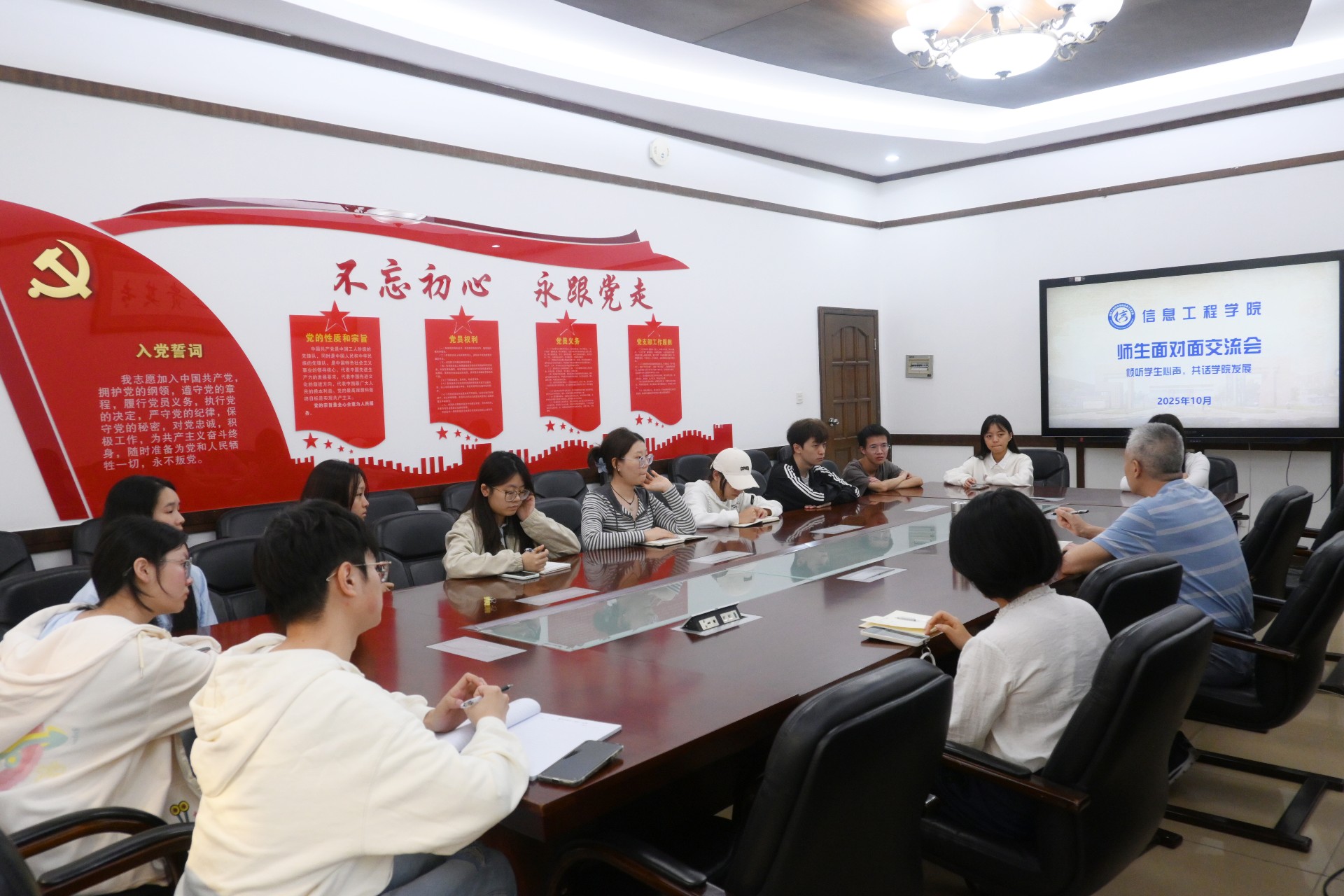 活动最后,左磊书记对各位学生代表的积极参与和坦诚建言表示感谢。他强调,信息工程学院始终坚持以生为本的办学理念,学生的成长成才是学院发展的核心动力。学院将认真梳理、研究本次活动中收集到的各项意见建议,并积极推动落实与改进。未来,学院将持续完善师生沟通机制,定期举办此类活动,及时回应学生关切,凝聚发展合力,共同推动学院各项事业迈向新台阶。