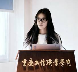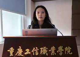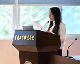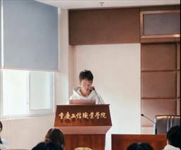 由信息工程学院学工干事邓丽娟宣读共青团重庆工信职业学院委员会文件《关于同意召开信息工程学院第三次学生会代表大会的批复》