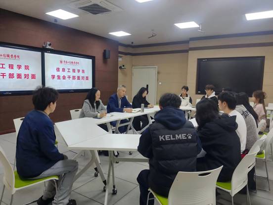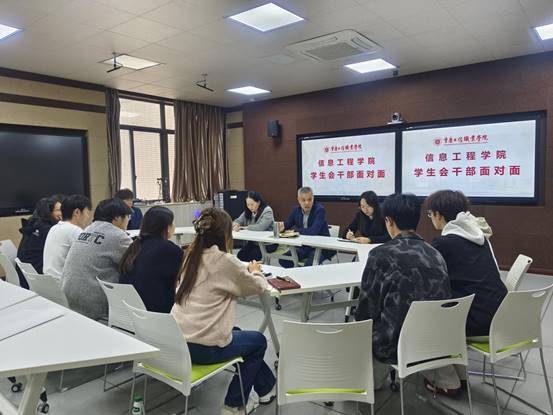 为进一步加强学院学生会组织建设,搭建师生沟通桥梁,倾听学生干部心声,助力学生干部成长成才,2025年11月12日,信息工程学院举办学生会干部面对面交流座谈会。学院党总支书记左磊、团总支书记赵钦蕊、学工干事邓丽娟出席会议,与第四届学生会全体干部齐聚一堂,共话责任与担当,共商发展与未来。