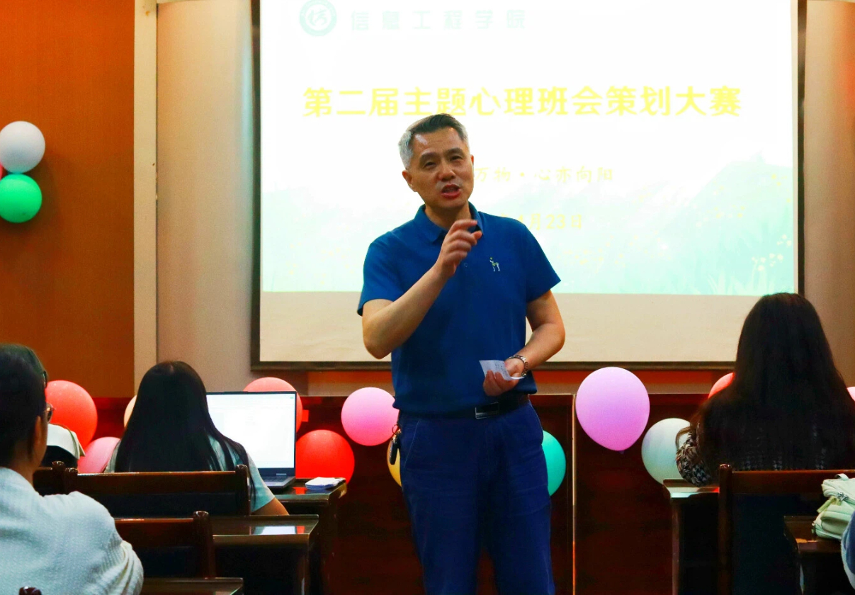 为深入贯彻“健康第一”教育理念,落实“五育并举”育人要求,2026年4月23日,信息工程学院在世纪楼三楼学术报告厅成功举办第二届主题心理班会策划大赛。本次比赛以“春生万物,心亦向阳”为主题,各专业优秀团队齐聚一堂,展开了一场温暖而富有创意的心理育人实践比拼。