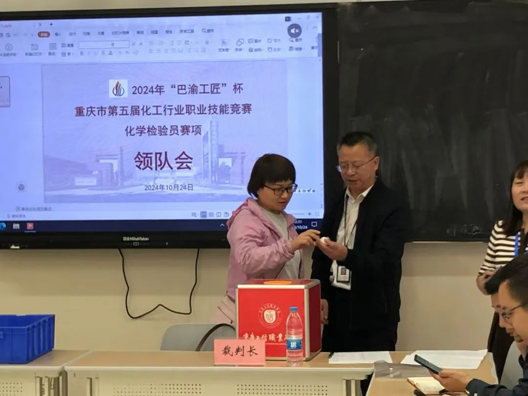 2024年10月24日,备受关注的“巴渝工匠”杯重庆市第五届化工行业职业技能竞赛即将拉开帷幕,来自25家单位的46名参赛选手齐聚重庆工信职业学院广知楼2209,参加化学检验员赛项领队会,共同备战即将开始的比赛。 重庆工信职业学院教务处处长万美春,重庆医科大学教授、大赛裁判长母昭德,大赛赛务负责人陈仲祥等出席会议。