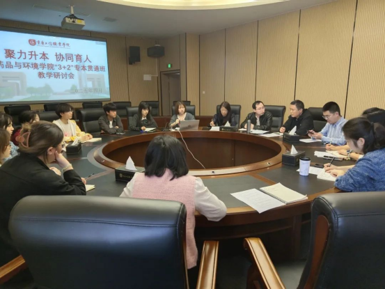 为全面了解掌握“3+2”对口贯通分段培养专业的公共基础、专业教学和班风学风,形成任课教师和辅导员团队的协同育人合力,汇聚教师集体智慧,提升教育教学质量,4月8日中午,药品与环境工程学院在立德楼1317会议室召开专本贯通班级教学研讨会。教务处负责人万美春,党委学生工作部负责人黄晓强,马克思主义学院(通识教育学院)负责人李琪,药品与环境工程学院负责人龚锋,以及部分任课教师、辅导员和学生代表参加了本次研讨会。会议由药品与环境工程学院负责人龚锋老师主持。