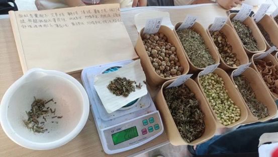 最受欢迎的当数自制香囊区域。桌上整齐摆放着各种中药材,如艾草、茉莉花、薄荷、丁香、柠檬草等,散发着独特而迷人的香气。同学们有序地排在一起,认真挑选自己喜欢的药材。在社团成员的耐心指导下,大家小心翼翼地将调配好的药粉装入精美的香囊袋中,亲手制作出一个个饱含心意与祝福的香囊。这些香囊不仅散发着清新怡人的香气,更有着驱蚊防疫、提神醒脑、舒缓情绪的功效,成为同学们爱不释手的小物件。