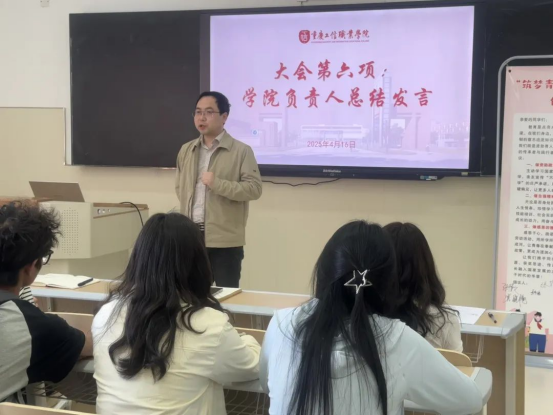 会中,学院负责人龚锋结合倡议书内容进行了总结发言,鼓励各位同学做资助政策的“传播者”,做自强精神的“践行者”,做感恩回馈的“奉献者”,鼓励大家勇敢逐梦、积极进取。相信在学校的关怀和支持下,同学们一定能以梦为马,不负韶华。