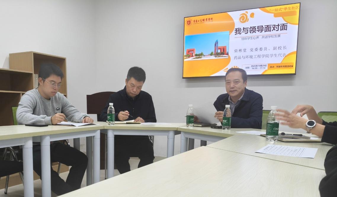 为搭建师生沟通桥梁,切实回应学生关切,10月29日,药品与环境工程学院在秀慧苑党团活动室举行以倾听学生心声,共话学校发展为主题,校长面对面交流座谈会。学校党委委员、副校长柴彬堂,学院党总支书记欧永春、帅玲林老师与各年级学生代表共同参与交流。