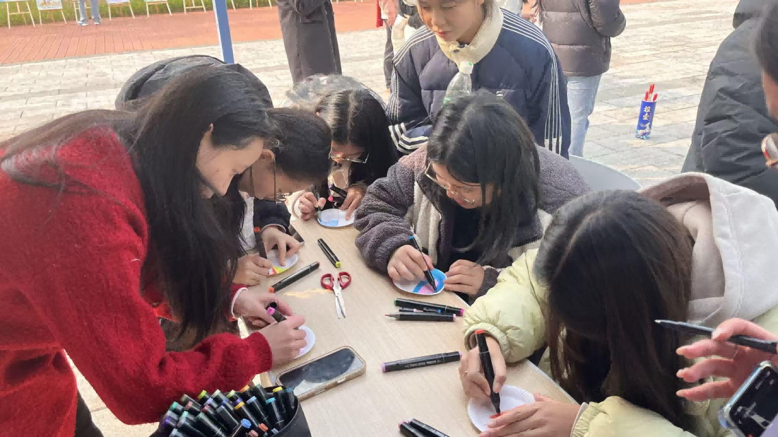 “心绪色谱【情绪调色盘】”环节极具创意,同学们在纸盘上划分扇形区域,用不同颜色、图案或场景描绘近一周的情绪——蓝色代表平静,红色象征愤怒,黄色寓意开心,绿色传递治愈。活动现场还安排了专业人员为同学们解读作品,帮助大家清晰识别自身情绪及产生原因。这一环节为不善用语言倾诉的同学提供了非语言表达渠道,让抽象的情绪变得具体可感,有效释放了压抑的心情。