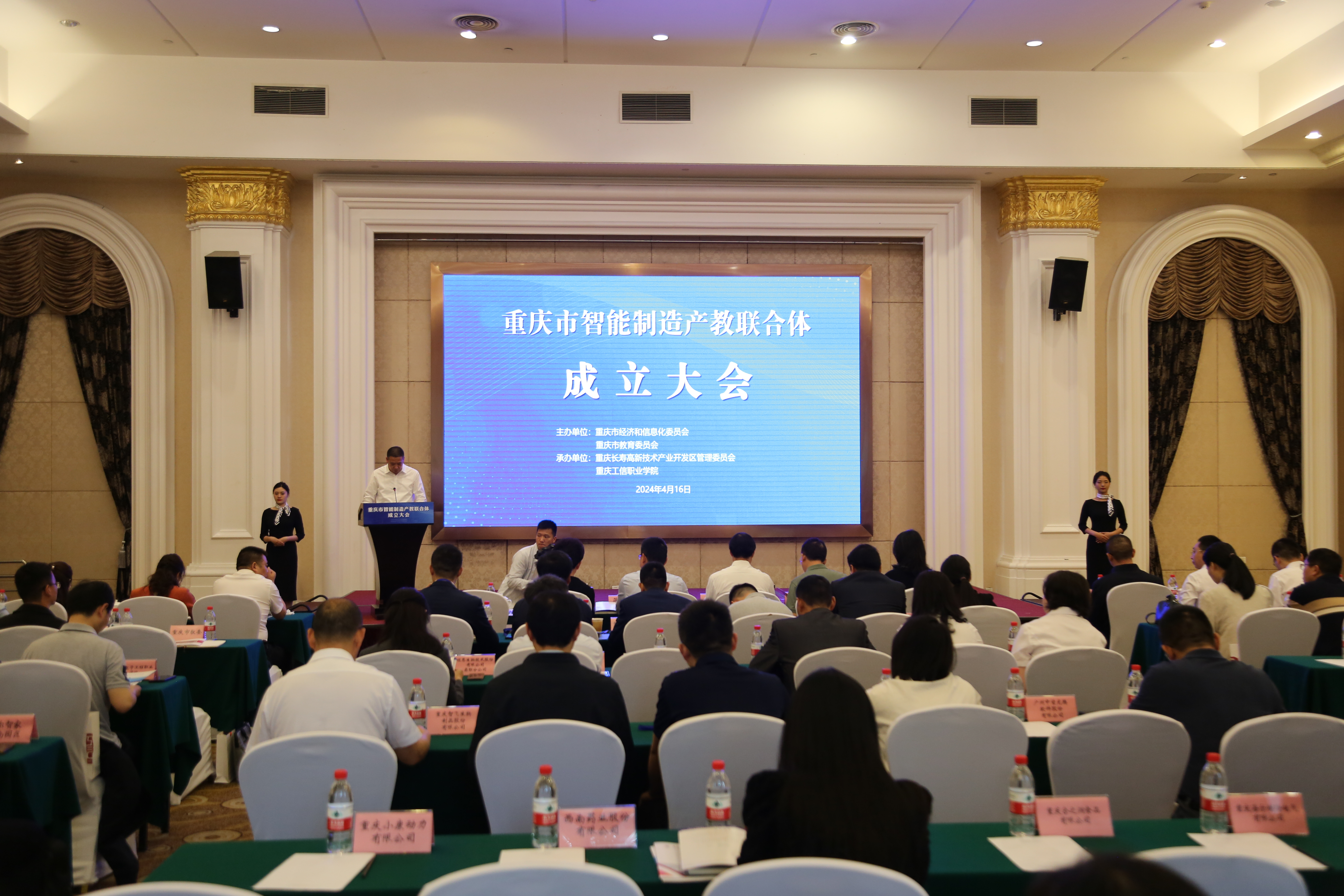 2024年4月16日,重庆市智能制造产教联合体成立大会在长寿举行。重庆市经济和信息化委员会党组成员、副主任汪立东,长寿区政府党组成员、副区长蒋发平,重庆工信职业学院党委书记高明,重庆工信职业学院党委副书记、院长杜宏伟出席会议。市经济信息委、市教委有关职能处室负责人,长寿高新区有关部门负责人,重庆市智能制造产教联合体理事会成员单位60余家以及成员单位80余家参加会议。会议由重庆市长寿高新技术产业开发区管理委员会主任孙廷胜主持。