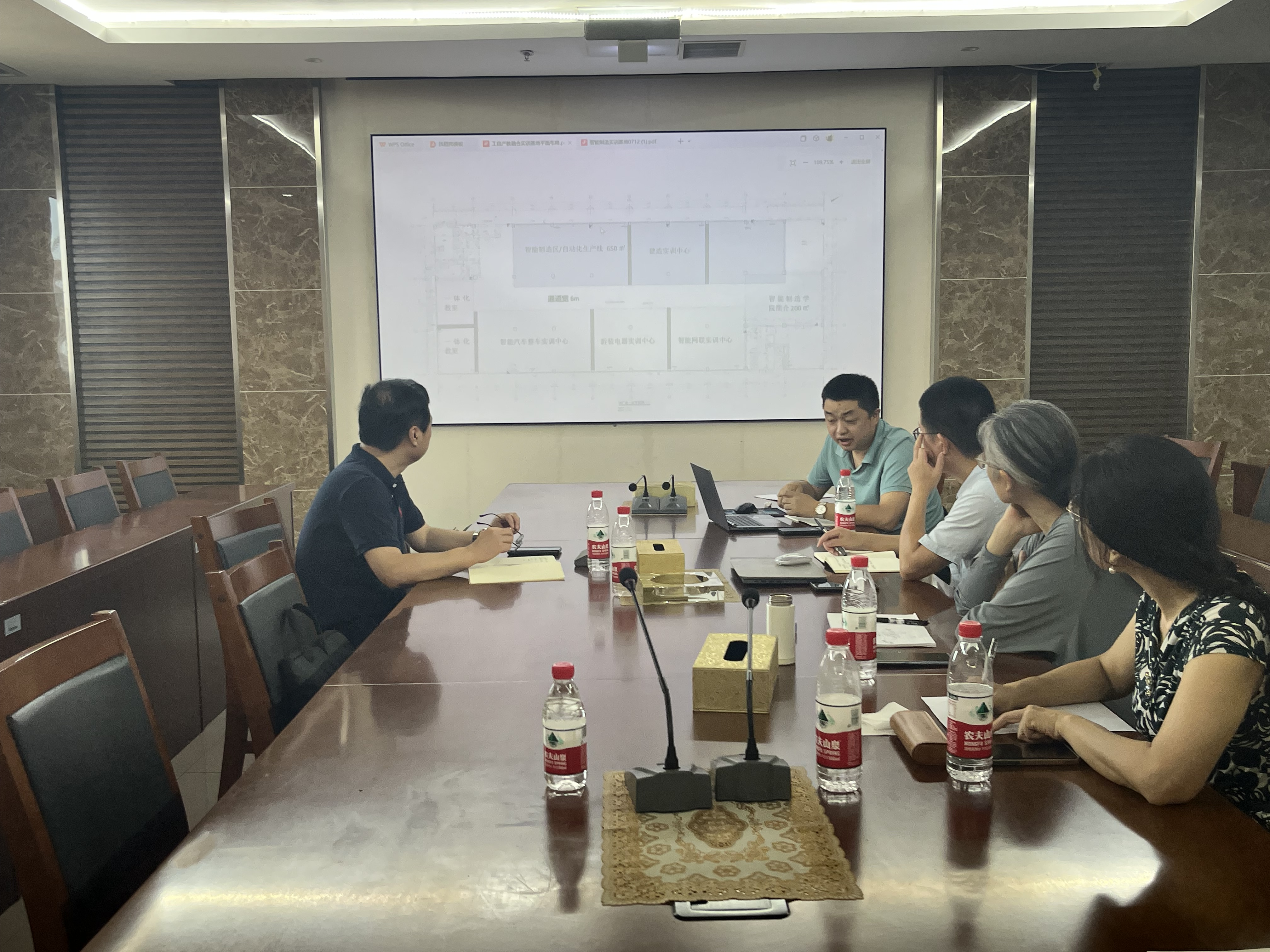 在会议中,与会人员对重庆市智能制造产教联合体的整体规划进行了全面讨论与分析。联合体选定实践中心一号楼的一、二、五层,并精心规划了楼层功能定位,确保实习实训与办公、展示及平台建设等功能的有效融合。会议还着重讨论了联合体的场地布局,将楼层功能划分为两大目的:一是为学生、社会提供智能制造、智能汽车等多个专业领域的实习实训机会,以丰富学习体验和提升实践能力;二是打造集办公、展示和平台建设于一体的核心区域,集中产教融合供需平台、共性技术服务平台、教学资源共享平台等关键平台,为产学研合作提供强大支持,推动科研成果的转化和产业发展,进而拓展智能制造产业链至汽车、装备制造、电子信息等领域,实现相关产业的全面升级和发展。