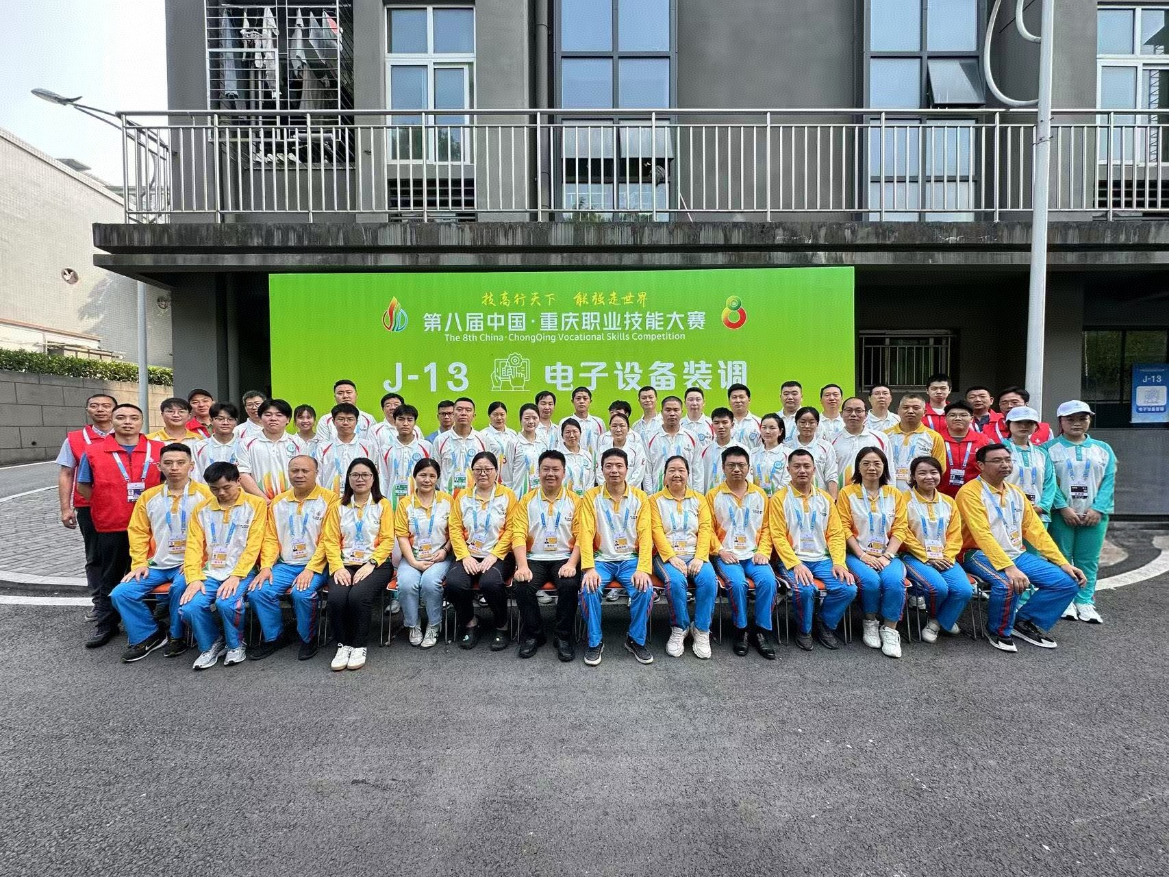 近日,第八届中国·重庆职业技能大赛在涪陵区盛大开幕,本次大赛共设置25个集中比赛项目和2个邀请赛项目,吸引了全市众多技能精英同台竞技。作为大赛重要保障单位之一,重庆工信职业学院智能制造学院凭借雄厚的专业实力和丰富的赛事经验,成功承担了电子设备装调项目的全程技术保障工作。同时还派出7名优秀选手和6名资深裁判参与了本次大赛7个赛项的角逐与执裁,全面展现了学院在智能制造领域的育人成果与社会服务能力。