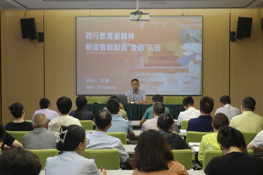 他深入剖析了学院教师队伍在年龄结构、专业与产业匹配度等方面存在的现状与挑战,并强调,全体党员教师必须率先垂范,发挥先锋模范作用,自觉以“教育家精神”为引领,深刻理解其“心有大我、至诚报国”的核心要义,将崇高的理想信念转化为投身教育强国实践的实际行动。他要求大家不仅要锤炼精湛的业务能力,跟上智能制造技术飞速发展的步伐,更要涵养深厚的育人智慧,努力成长为支撑学院转型升级的“金师”和中坚力量,为学院高质量发展提供不竭动力。