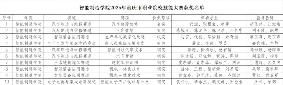 本次大赛不仅检验了我院学生的专业实操能力和创新意识,也进一步提升了学院在重庆市职业院校中的影响力。学院将继续深化教育教学改革,强化实践技能培养,为培养更多适应智能制造产业发展需要的高素质技术技能人才而不懈努力。