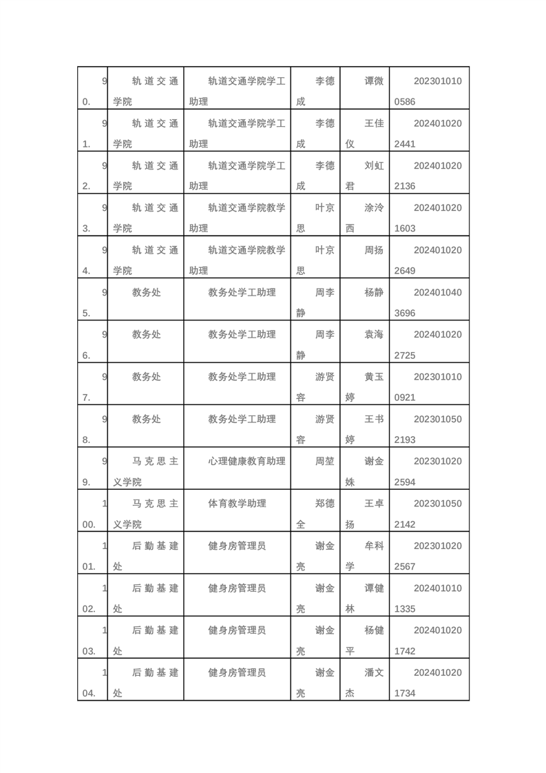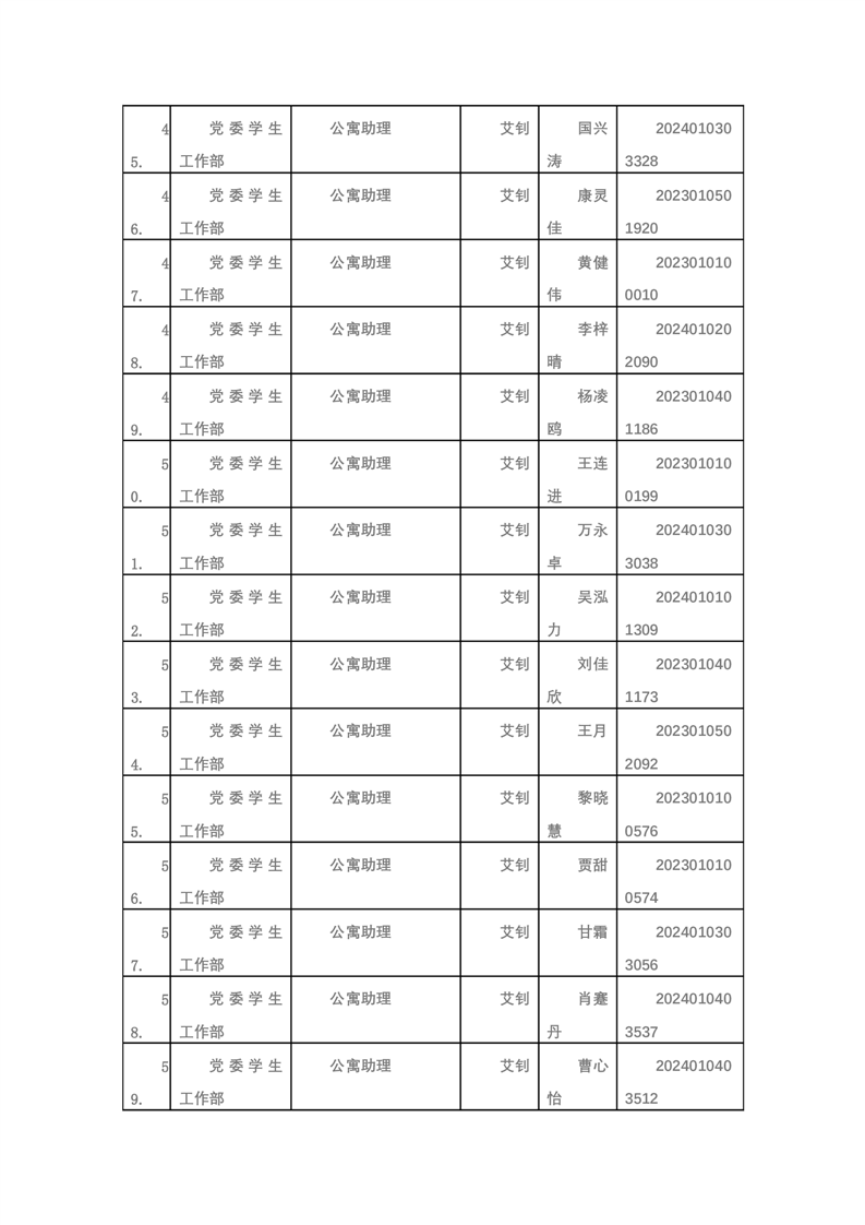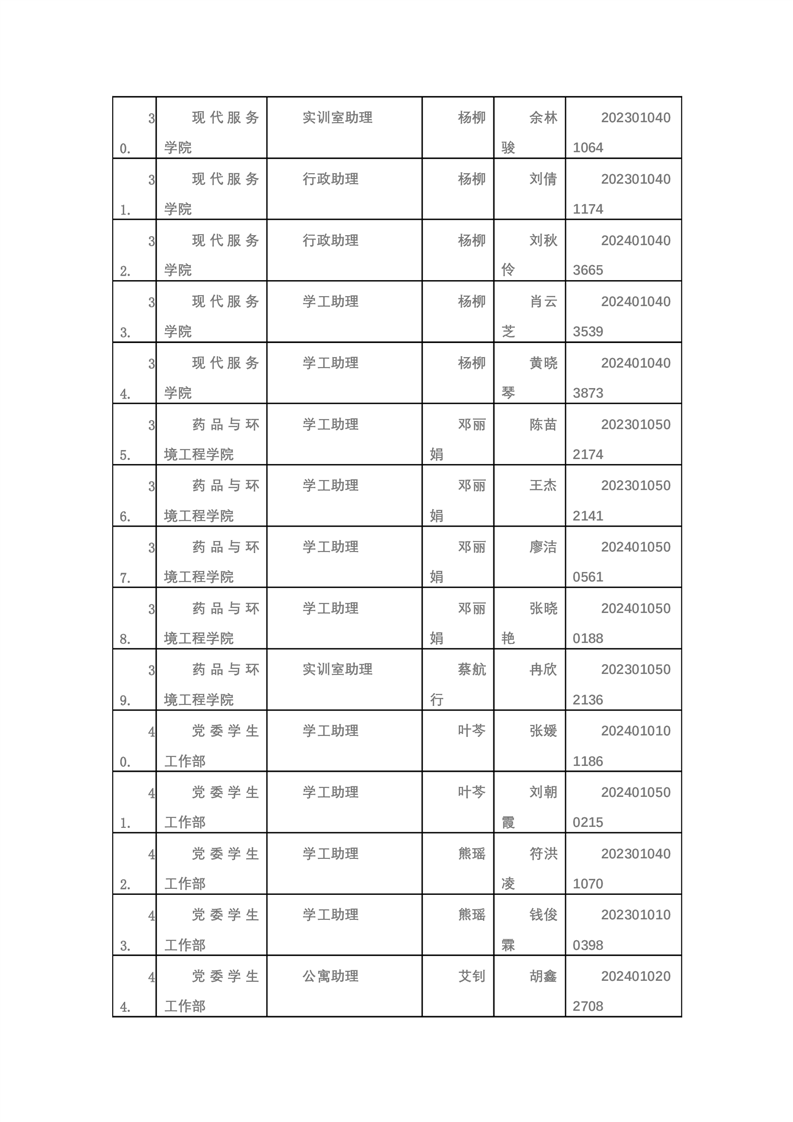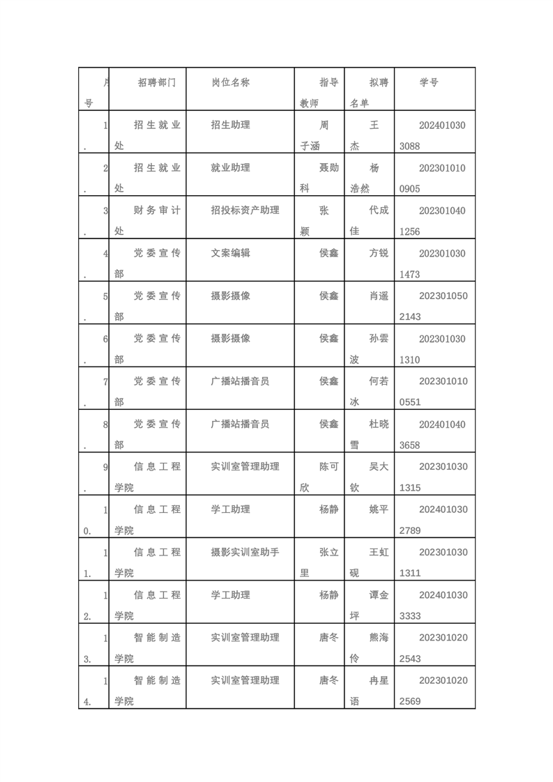 2024-2025学年第二学期校内勤工助学拟聘用人员名单公示