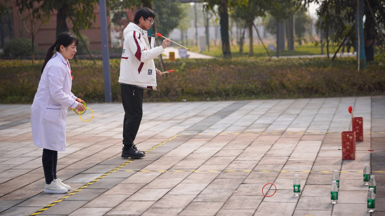 趣味互动:投壶、套瓶小游戏让现场笑声不断,达标就能抽奖,针管笔、笔记本等小奖品拿到手软~