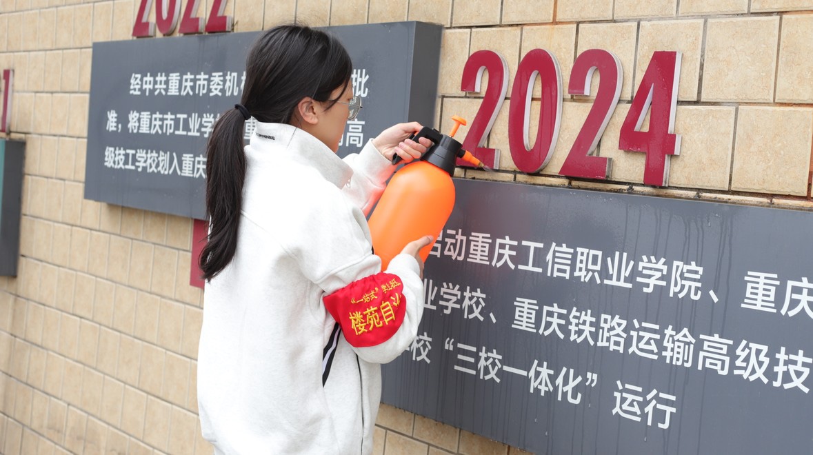 为进一步优化学生社区居住环境,筑牢校园卫生安全屏障,切实保障同学们的身体健康与生活安全,我校“一站式”学生社区2026年3月27日,组织勤工助学学生志愿者,在长寿校区与渝中校区同步开展公共区域全面清洁消毒专项志愿行动,以实际行动践行服务宗旨,守护共同家园。