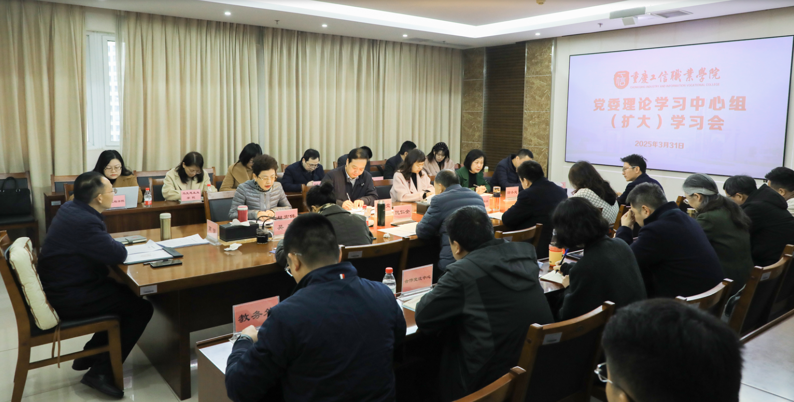 2025年3月31日,重庆工信职业学院召开2025年第4次党委理论学习中心组(扩大)学习会,深入学习全国两会精神,并开展研讨交流。..