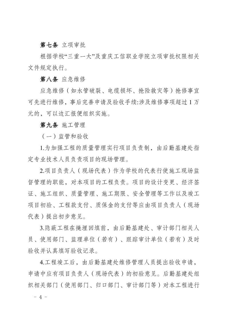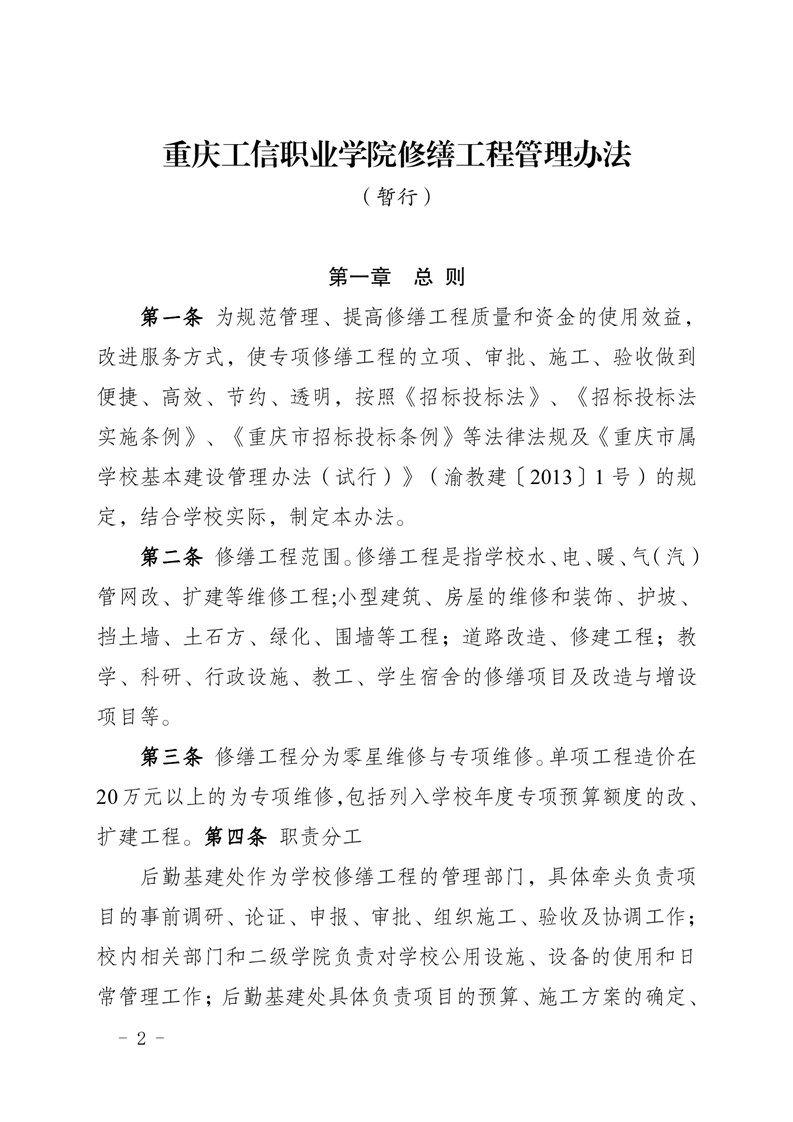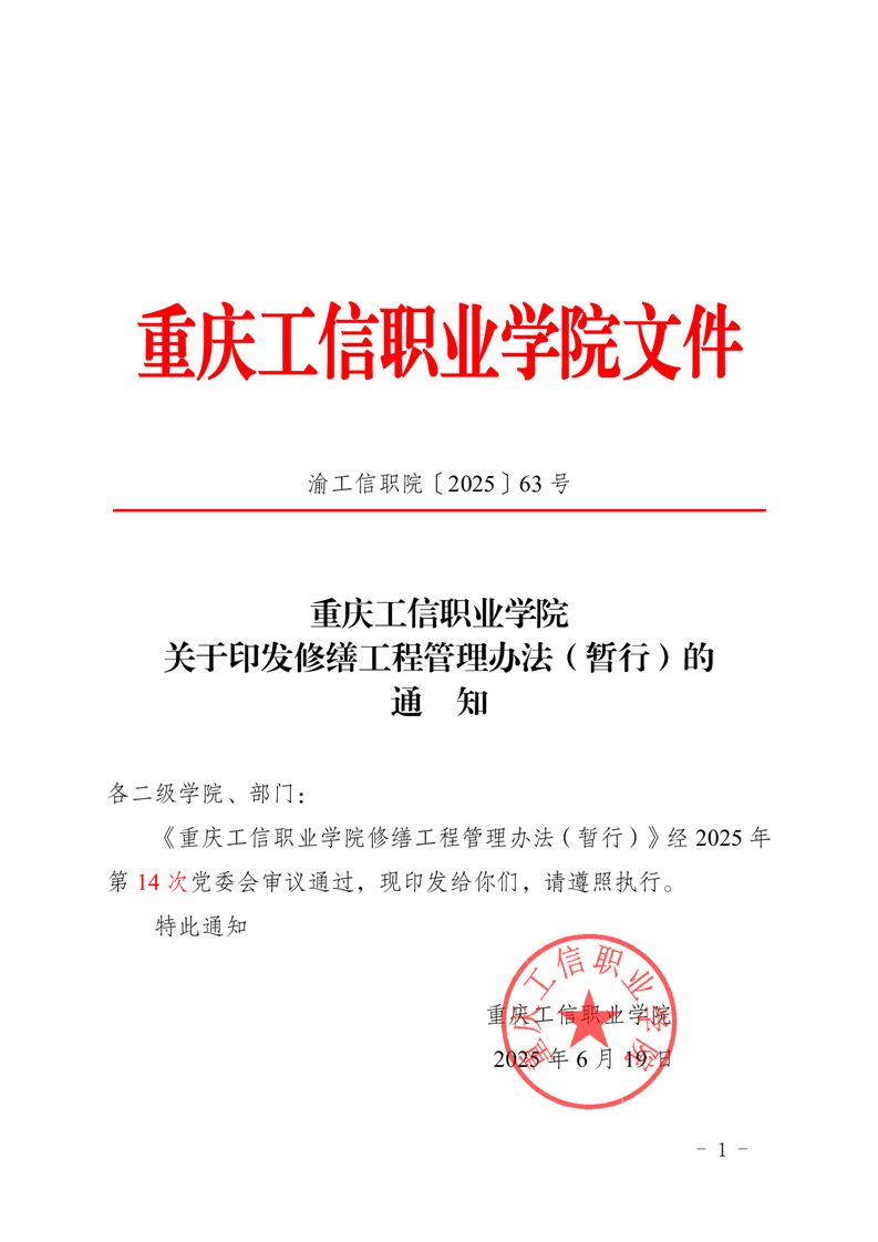 重庆工信职业学院关于印发修缮工程管理办法(暂行)的通知