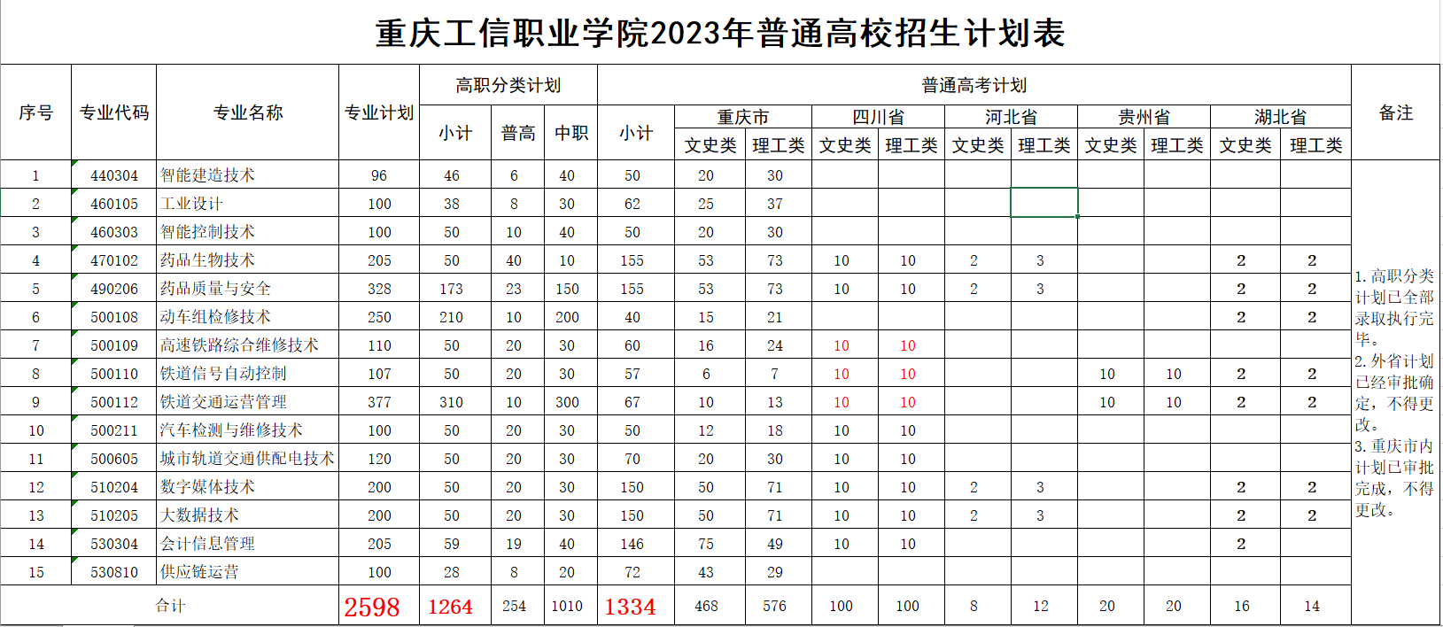 经重庆市教育委员会、四川省教育考试院、河北省教育考试院、贵州省教育考试院、湖北省教育考试院审核批准,现将我校2023年全日制普通高校招生计划发布如下: