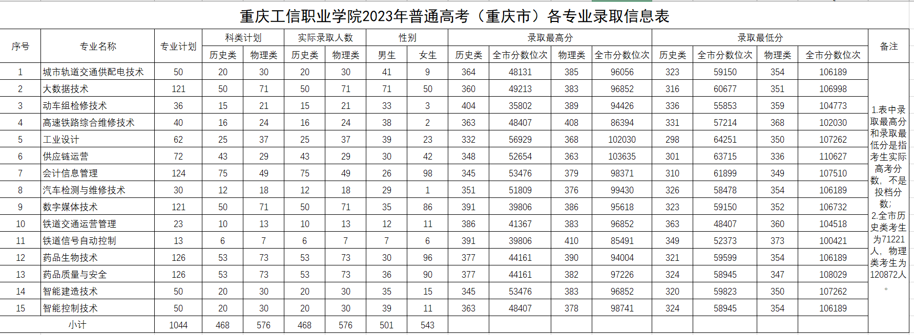 一、 重庆地区各专业录取情况